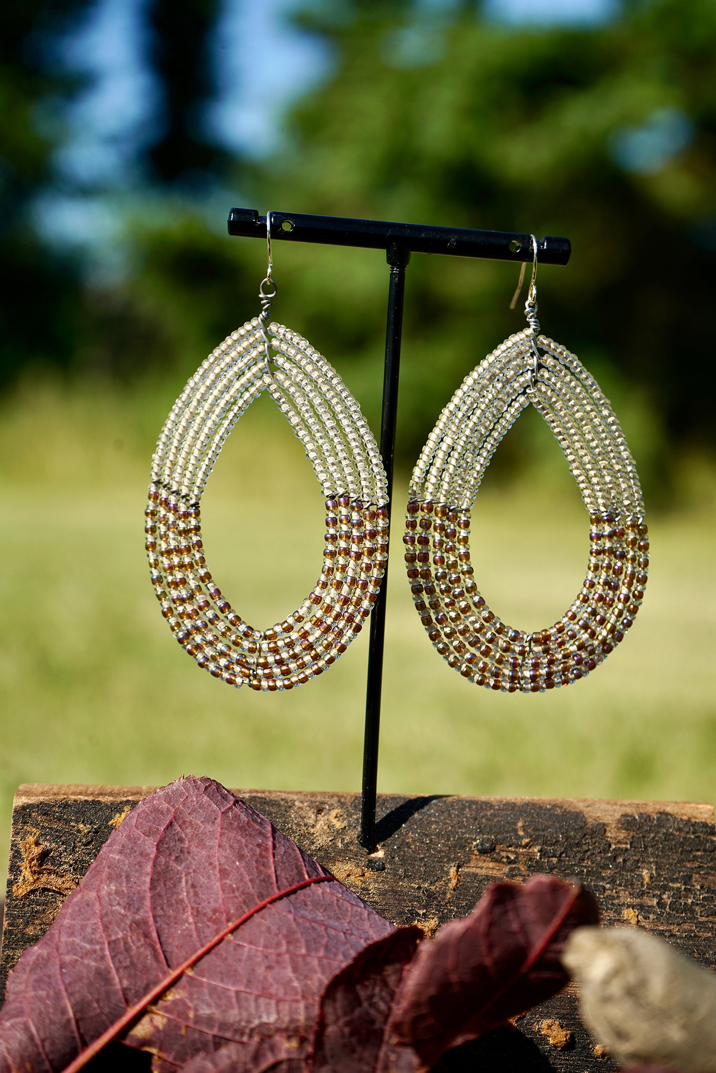 These handmade earrings with their vibrant beads represent the joy of the women who crafted them.