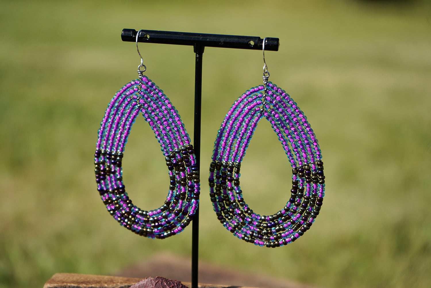 These handmade earrings with their vibrant beads represent the joy of the women who crafted them.